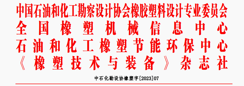 2023 年全國橡塑中心工作年會(huì )定于 2023 年 6 月 16~19 日在福建南平召開(kāi),此次會(huì )議 由中國石油和化工勘察設計協(xié)會(huì )橡膠塑料設計專(zhuān)業(yè)委員會(huì )、全國橡膠塑料設計技術(shù)中心、 全國橡膠塑料技術(shù)專(zhuān)家委員會(huì )、全國橡塑機械信息中心、石油和化工橡塑節能環(huán)保中心、 《橡塑技術(shù)與裝備》《橡塑智造與節能環(huán)?!冯s志社聯(lián)合舉辦。